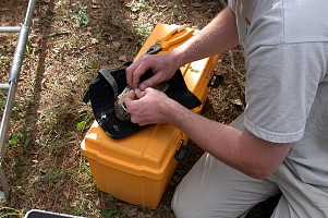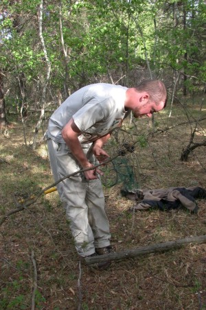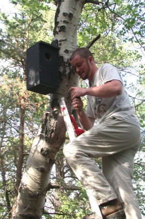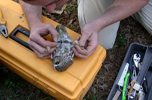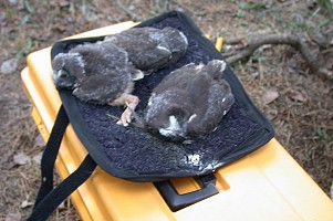 ![]() Getting the babies out of the nest box - there were 5 of them, but the littlest was too small to band. |