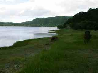 A large and attractive lake next to the main road to Furnas. Access by good tracks at each end. The southern shore, by Jose do Canto church, is sandy and has attracted waders. All of the water birds that we saw were in the narrower northern section, near the thermal area. There is a path all along the western shore.