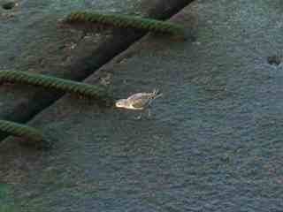 This is probably the main site in the islands. It is found by turning off the main road just south of Cabo da Praia as if heading for the industrial area adjacent to the harbour and then turning right at each junction until you see an obvious shallow quarry. A large warehouse was under construction and may soon obstruct the view as you approach. The quarry itself has a very uneven floor with a variety of vegetation and rock pools; it floods at high tide by water seeping through the narrow bank separating it from the sea. Birds do not seem to be affected by the change in water levels and, except for Whimbrels, do not seem to leave the quarry unless disturbed. You can get good views from next to the explosives compound or from the top of the bank, and it is possible to use a car as a hide and drive along a track across much of the area. There are some pools at the back of the site that are screened by Giant Reeds.